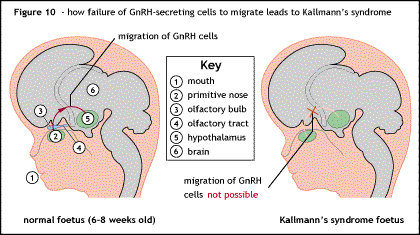 In other words, GnRH-secreting cells (GnRH being the vital ingredient for normal puberty) can only migrate to the hypothalamus if the olfactory bulbs and tracts develop normally during the embryonic phase of development.